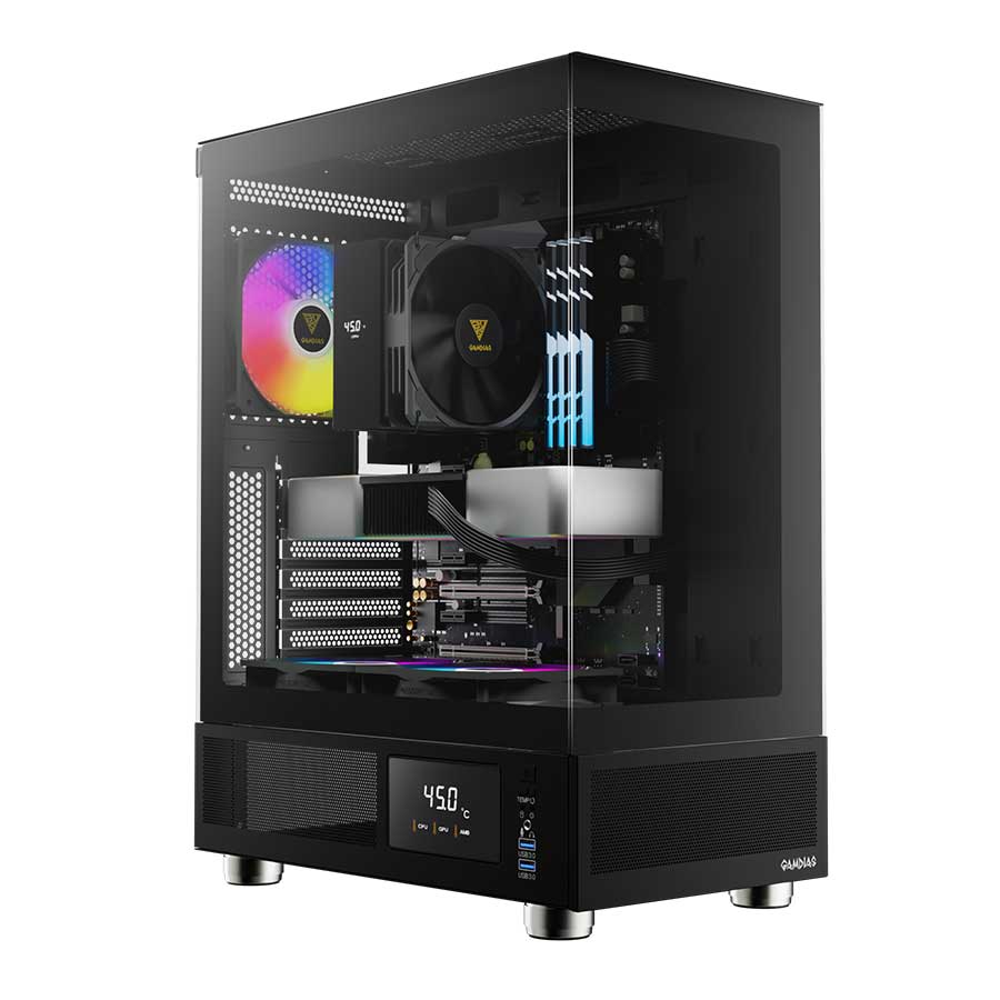 GAMDIAS ATLAS E1 یک کیس کامپیوتر از نوع Mid Tower است که توسط شرکت GAMDIAS طراحی و تولید شده است. این کیس به دلیل طراحی مدرن، نورپردازی ARGB و امکانات مناسب، برای ساخت سیستمهای گیمینگ و حرفهای ایدهآل است.
