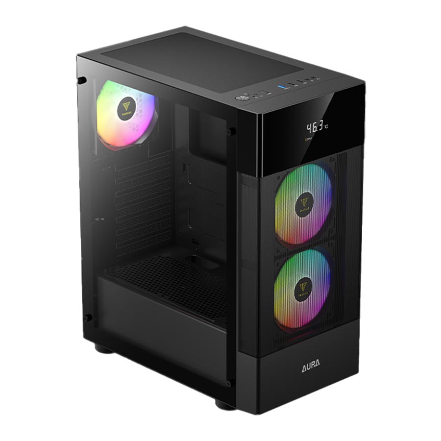 کیس AURA GC5 دارای طراحی مدرن و شیک با پنل کناری شیشهای است که امکان مشاهده اجزای داخلی سیستم را فراهم میکند.